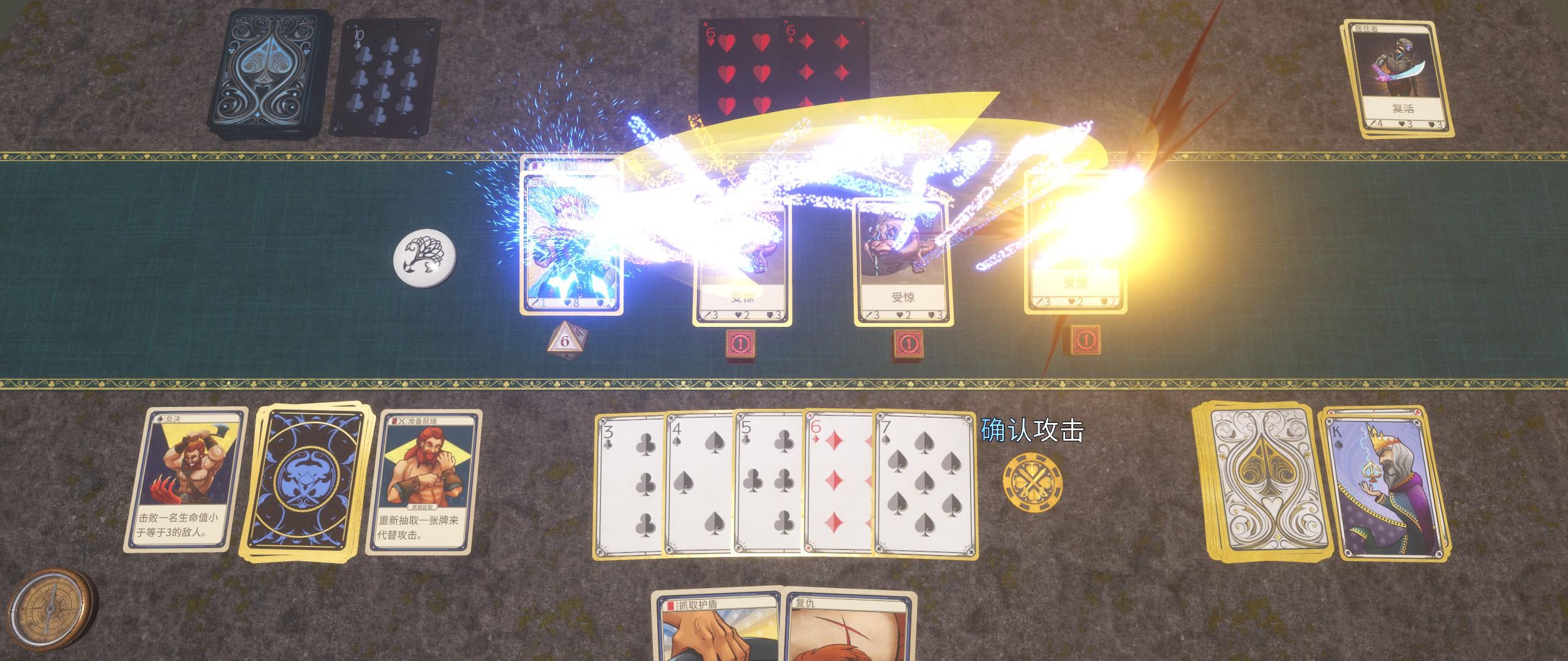 在不考虑一些技能,装备加成的情况下,比如我出了四条A,敌人出的牌比我小,那么我就可以给敌人造成四点伤害,反之,如果敌方出牌之后如果我方防守牌比对方大,也能造成反击伤害。