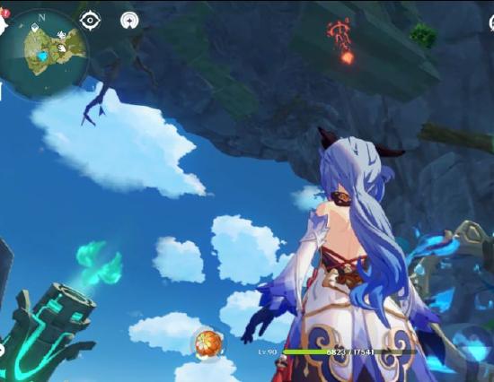 但是在上面的火元素柱和水元素柱就有点麻烦了,火元素柱用安柏还可以点燃,但水元素柱的话就需要用到达达利亚了,也就是公子。但对于没有公子的小伙伴该怎么办呢?这时候就需要灵活运用周围的仪器了。