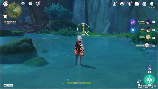 3、开启传送锚点后,沿着前面的山洞往前走,会看到一个仙灵。